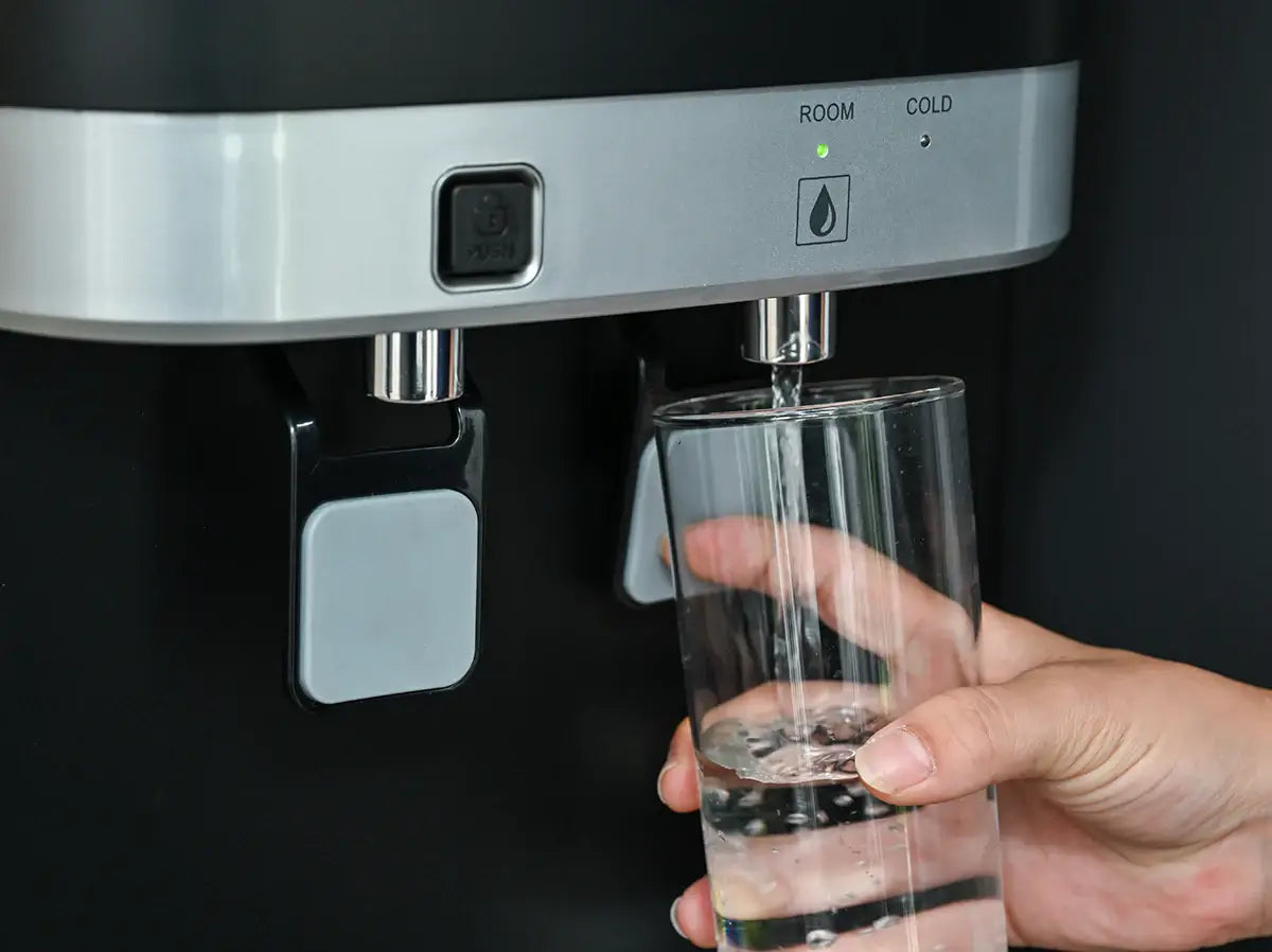 The water purifier's simple and clean design with just a push to draw water ensures straightforward usage.